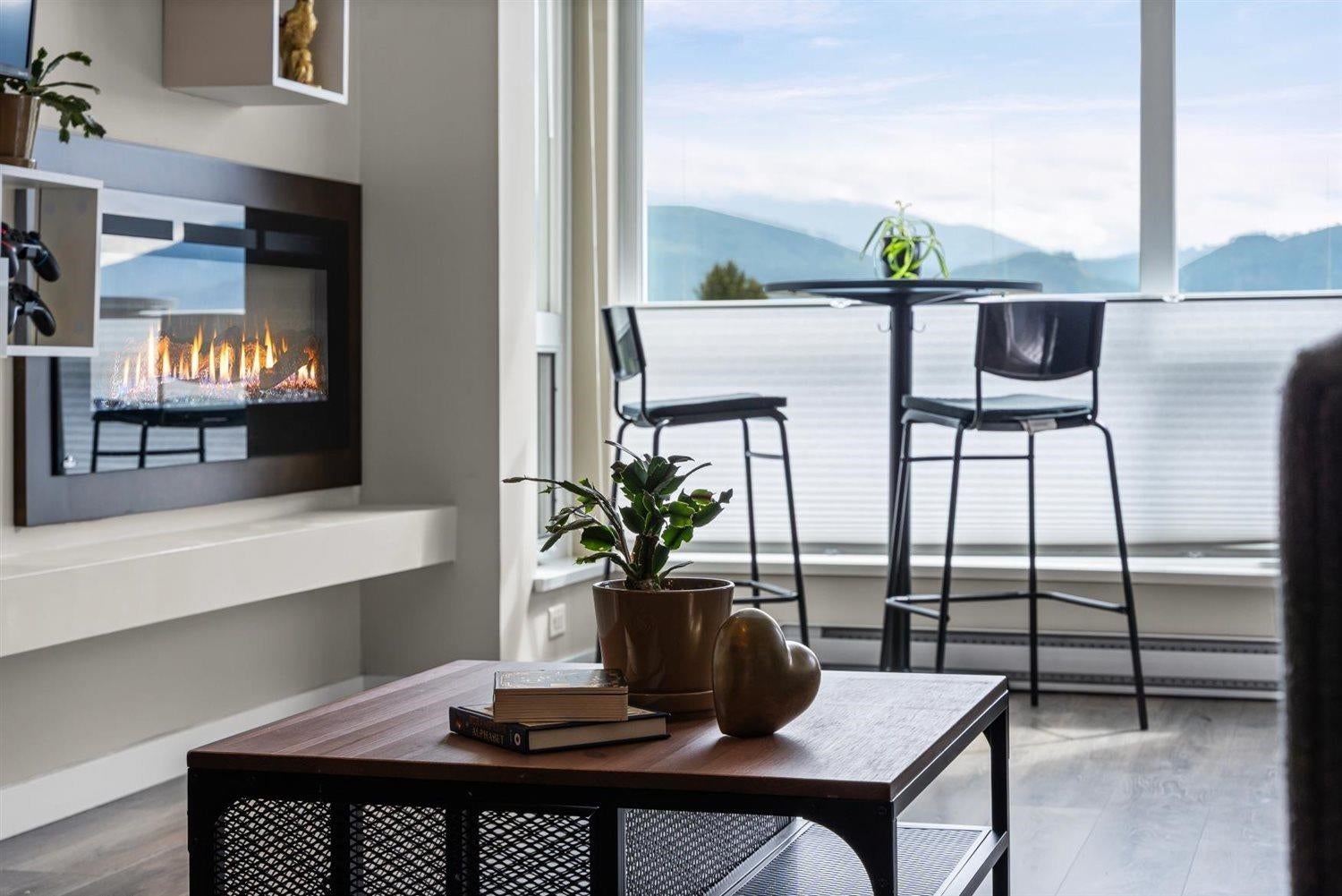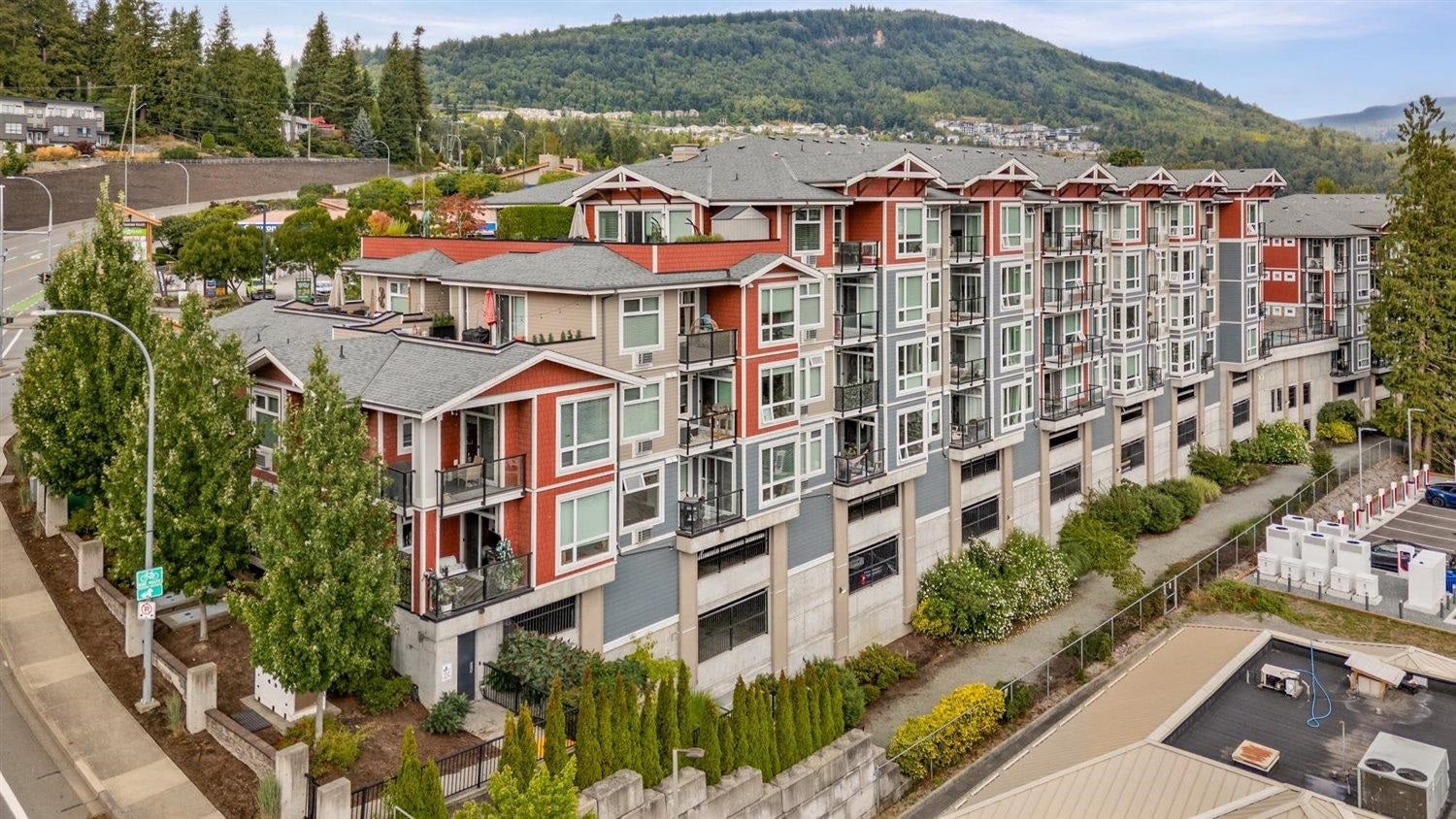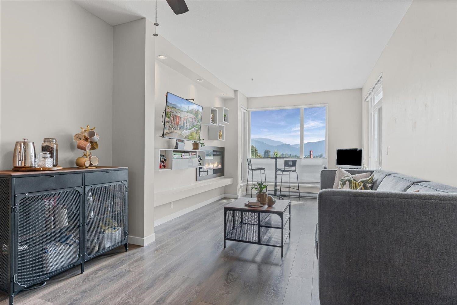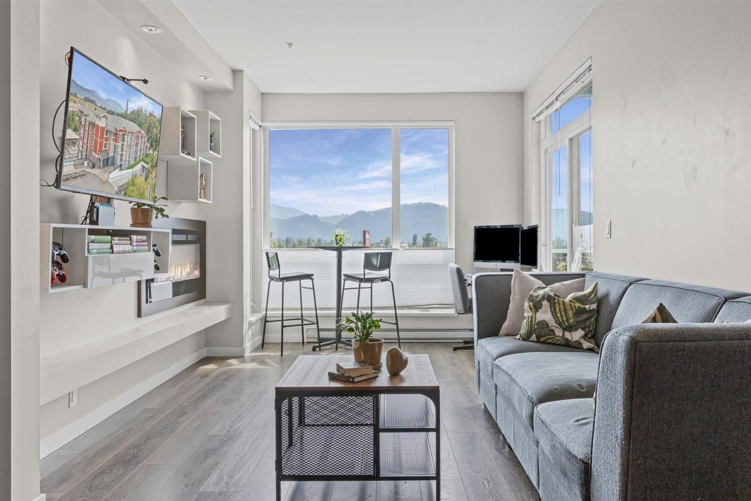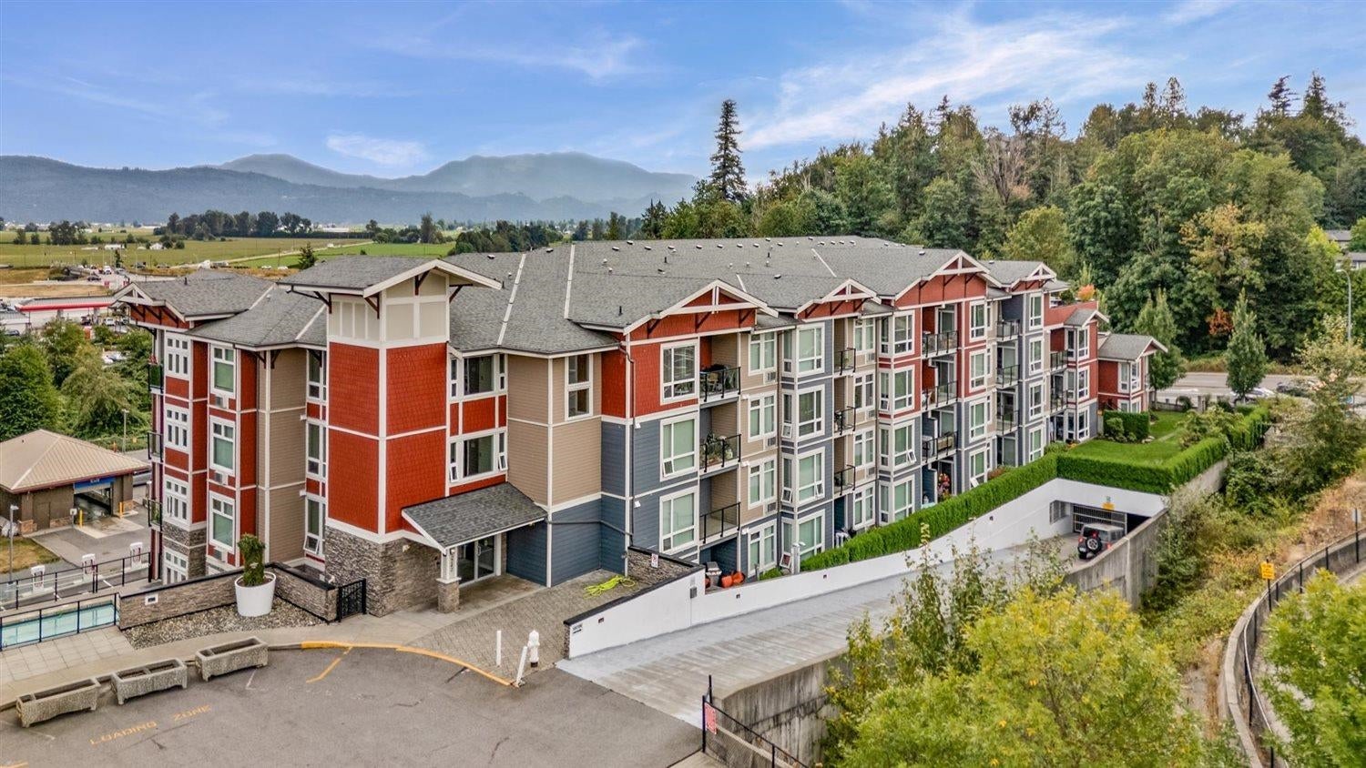 Welcome to WATERLEAF , this modern 2 bed, 2 full bath condo in a prime central location with quick and easy Hwy 1 access! Enjoy SWEEPING VIEWS of the Sumas Flats and iconic Mount Baker from your windows and balcony. This contemporary home offers an open layout with just shy of 900 sqft, sleek finishes, and plenty of natural light. The building delivers RESORT-style living with an outdoor pool, hot tub, spacious recreation room, fully equipped gym, and a serene treed walking path. Pet-friendly, no age restrictions with 2 covered parking spots plus a storage locker this home ideal for everyone. Live in comfort, security and style while staying close to shopping, dining, and all amenities!