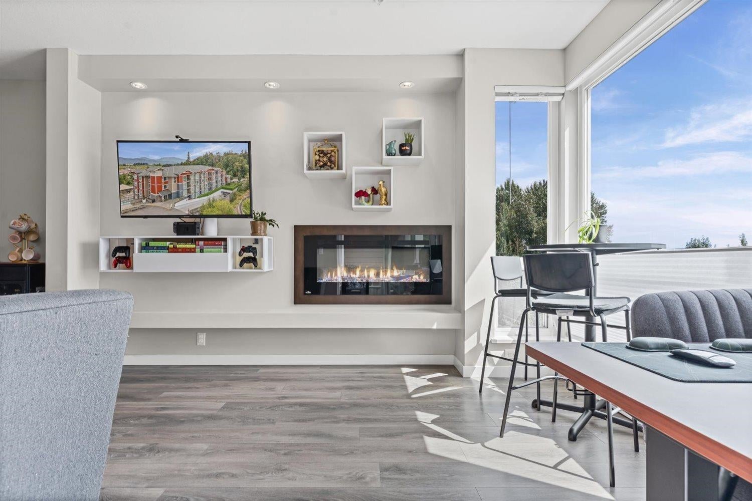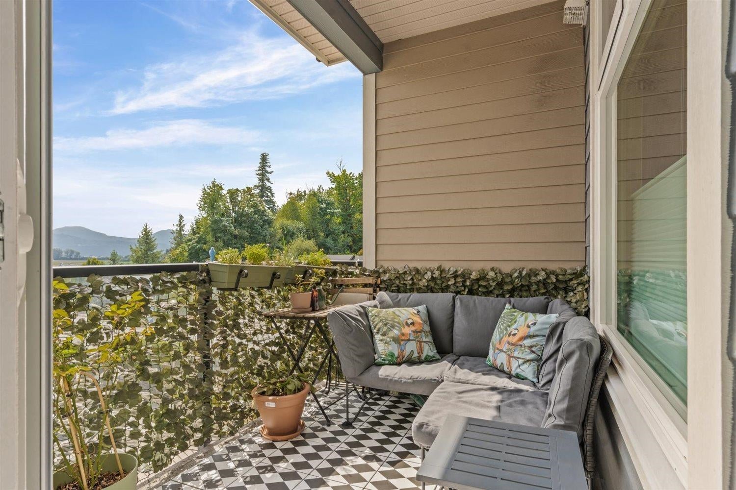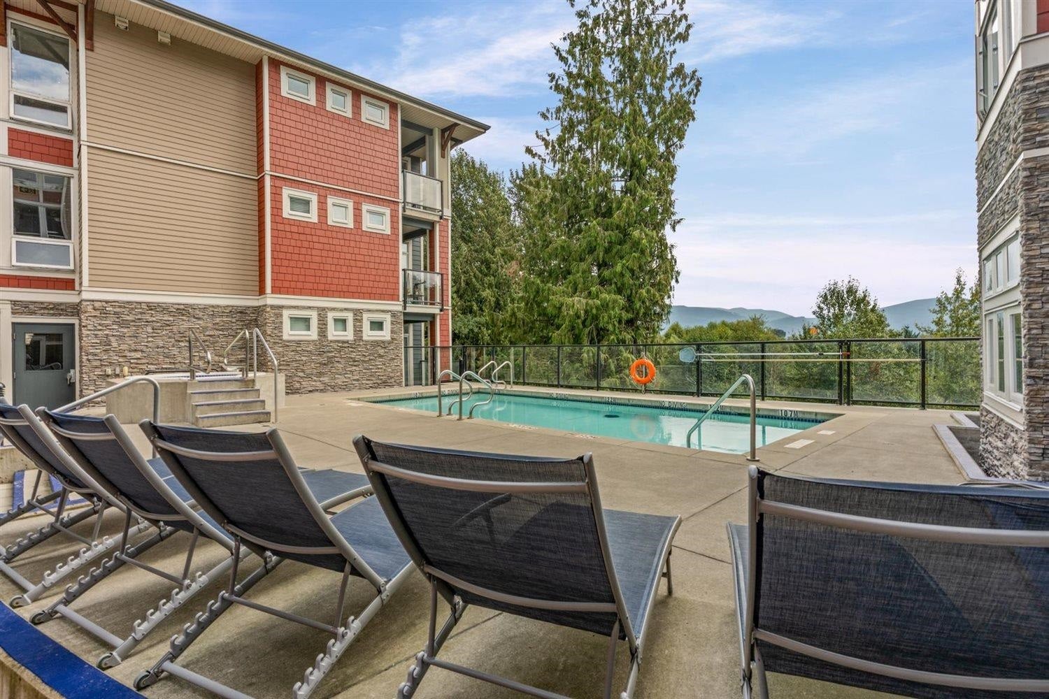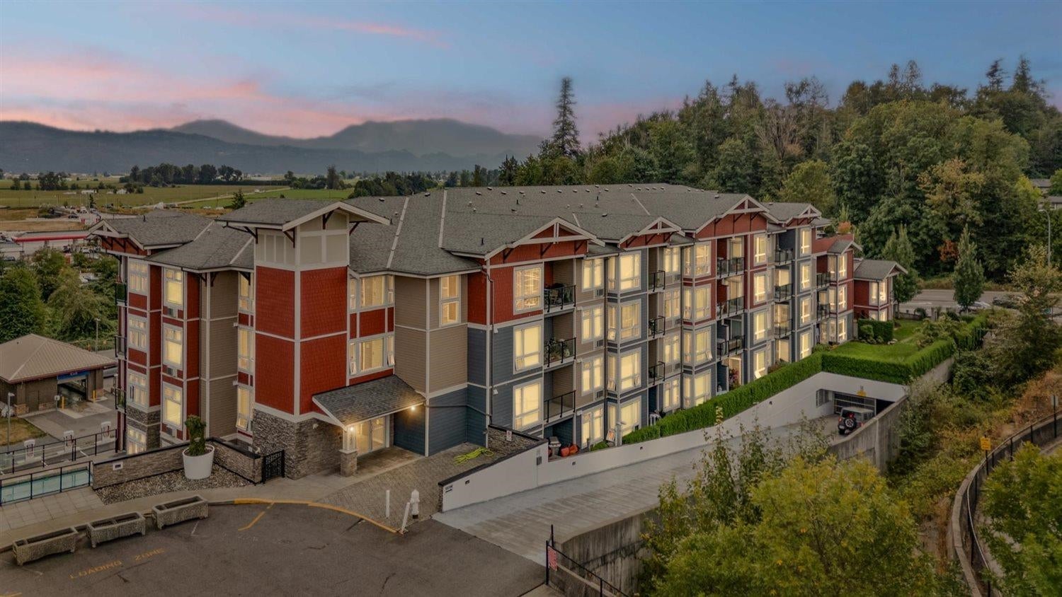 Welcome to WATERLEAF , this modern 2 bed, 2 full bath condo in a prime central location with quick and easy Hwy 1 access! Enjoy SWEEPING VIEWS of the Sumas Flats and iconic Mount Baker from your windows and balcony. This contemporary home offers an open layout with just shy of 900 sqft, sleek finishes, and plenty of natural light. The building delivers RESORT-style living with an outdoor pool, hot tub, spacious recreation room, fully equipped gym, and a serene treed walking path. Pet-friendly, no age restrictions with 2 covered parking spots plus a storage locker this home ideal for everyone. Live in comfort, security and style while staying close to shopping, dining, and all amenities!