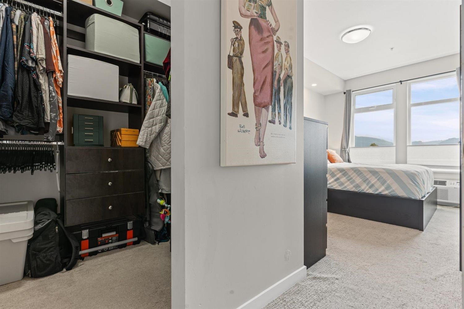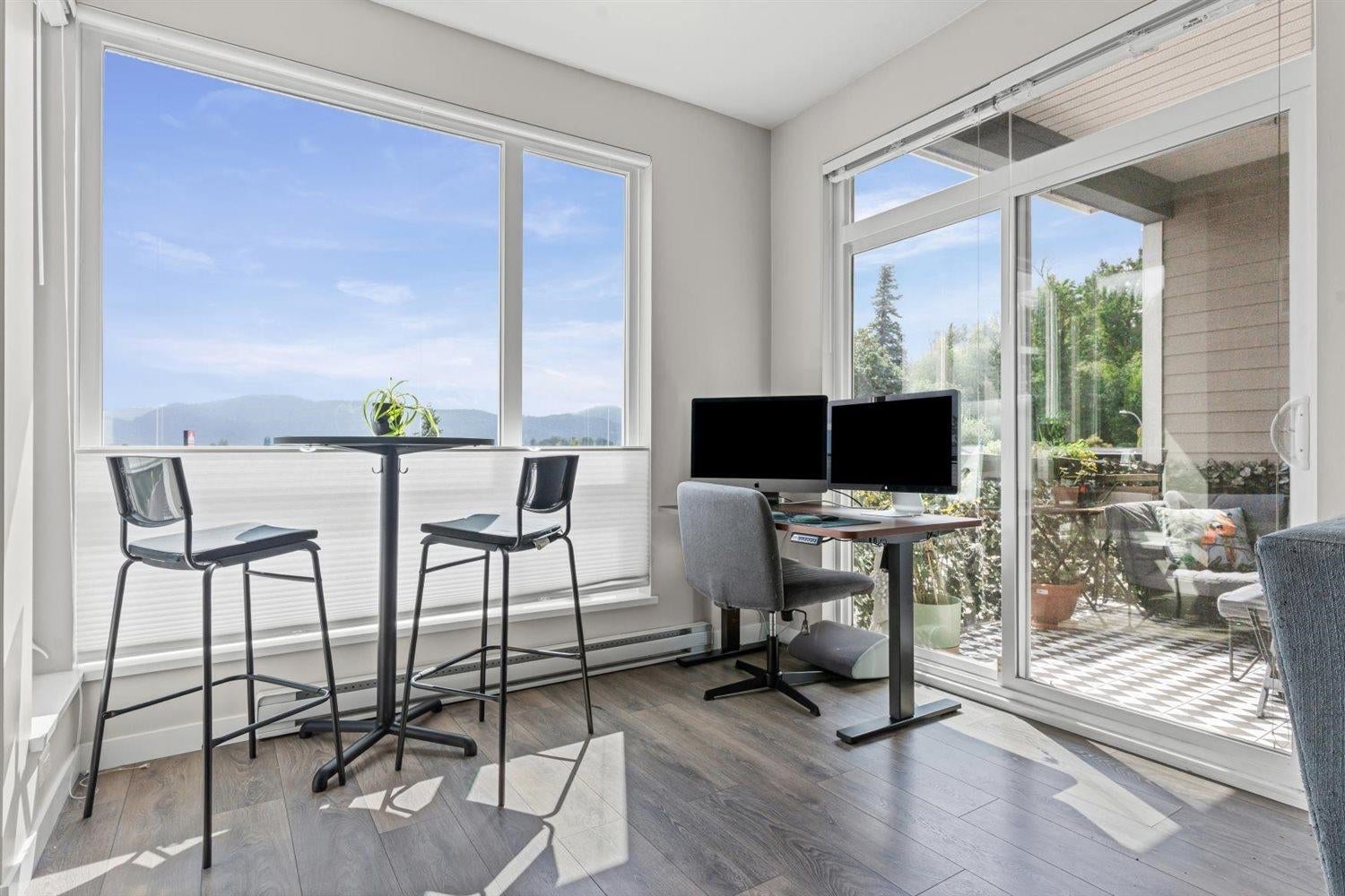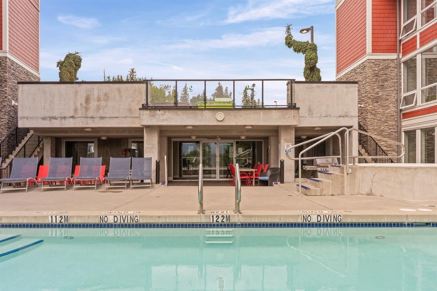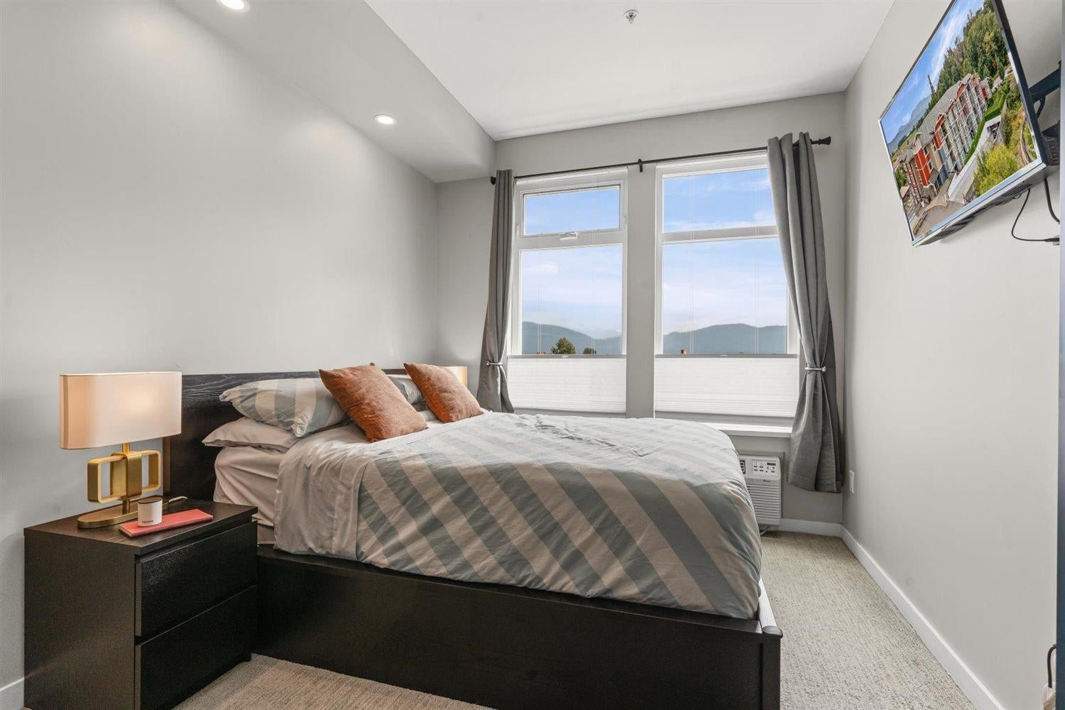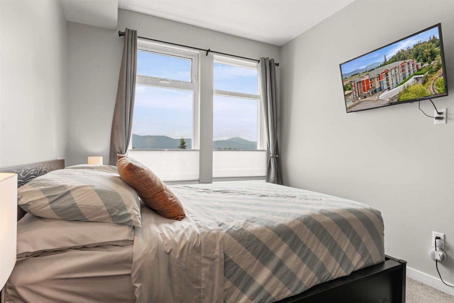 Welcome to WATERLEAF , this modern 2 bed, 2 full bath condo in a prime central location with quick and easy Hwy 1 access! Enjoy SWEEPING VIEWS of the Sumas Flats and iconic Mount Baker from your windows and balcony. This contemporary home offers an open layout with just shy of 900 sqft, sleek finishes, and plenty of natural light. The building delivers RESORT-style living with an outdoor pool, hot tub, spacious recreation room, fully equipped gym, and a serene treed walking path. Pet-friendly, no age restrictions with 2 covered parking spots plus a storage locker this home ideal for everyone. Live in comfort, security and style while staying close to shopping, dining, and all amenities!