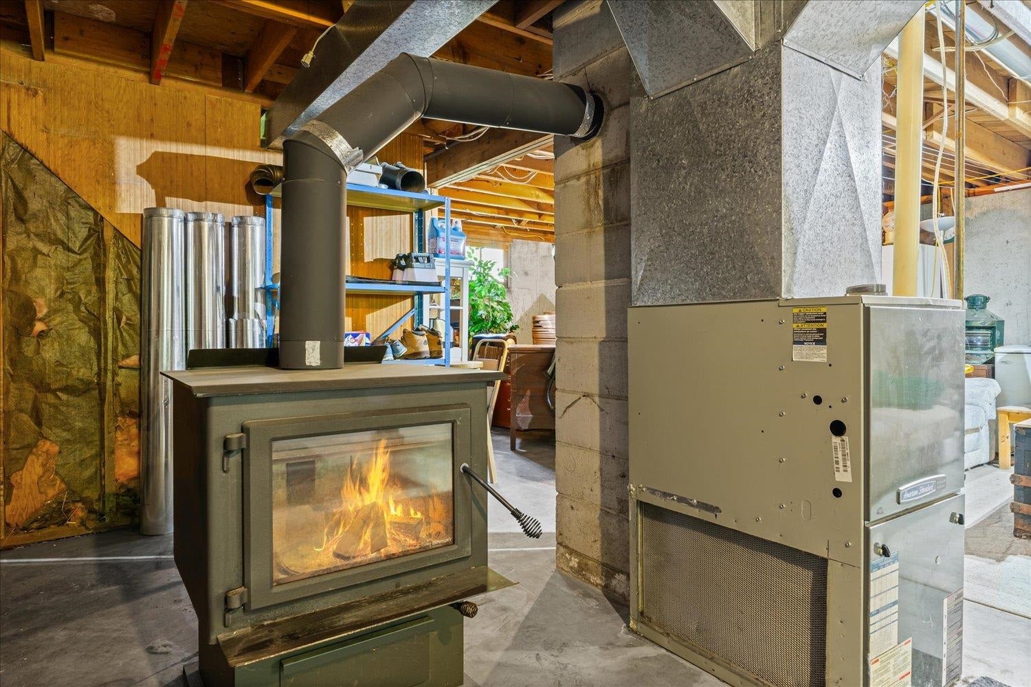High efficiency 3 yr old WETT Certified reburner wood stove in bsmt PLUS energy efficient (earth magnet tech) HEAT PUMPS to keep you cozy all winter & cool in the summer!