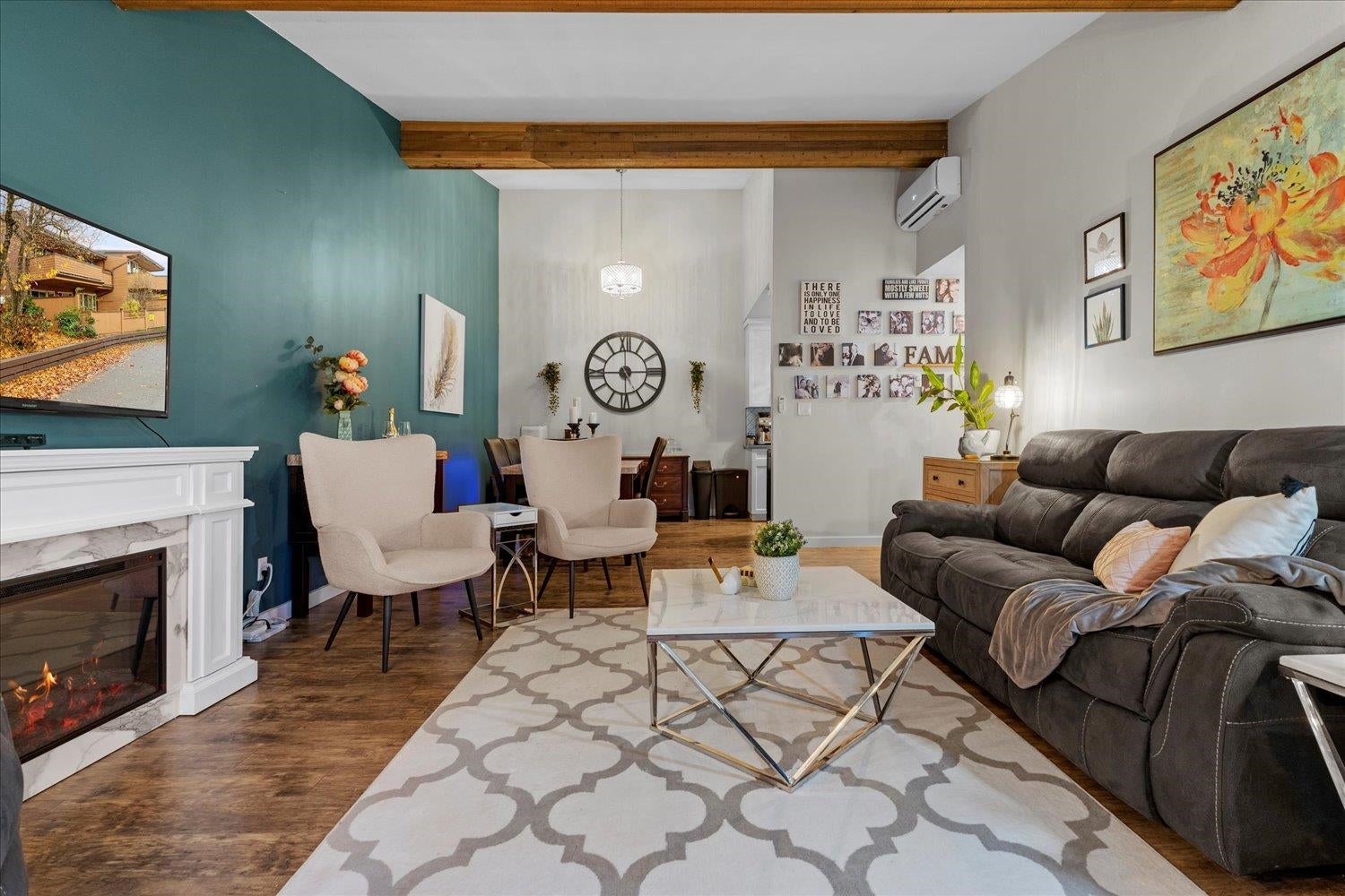 Move-in ready TOP FLOOR 2 bed, 2 bath condo with EXTENSIVE PROFESSIONAL UPDATES throughout. This bright & spacious home offers vaulted ceilings, a renovated kitchen with quartz countertops & stainless steel appliances, updated spa like bathrooms, and a BUILT IN AIR CONDITIONING UNIT system for year-round comfort. The primary bedroom features MOUNT CHEAM VIEWS with a 2-piece ensuite, while the second bedroom is ideal for guests or a home office. Step onto your private balcony overlooking the peaceful STRATA GREENSPACE for gardening & great for pets! Conveniently located close to parks, shopping, and transit. A great opportunity for first-time buyers looking for a stylish, low-maintenance home in a fantastic location. This one is a MUST VIEW TODAY!